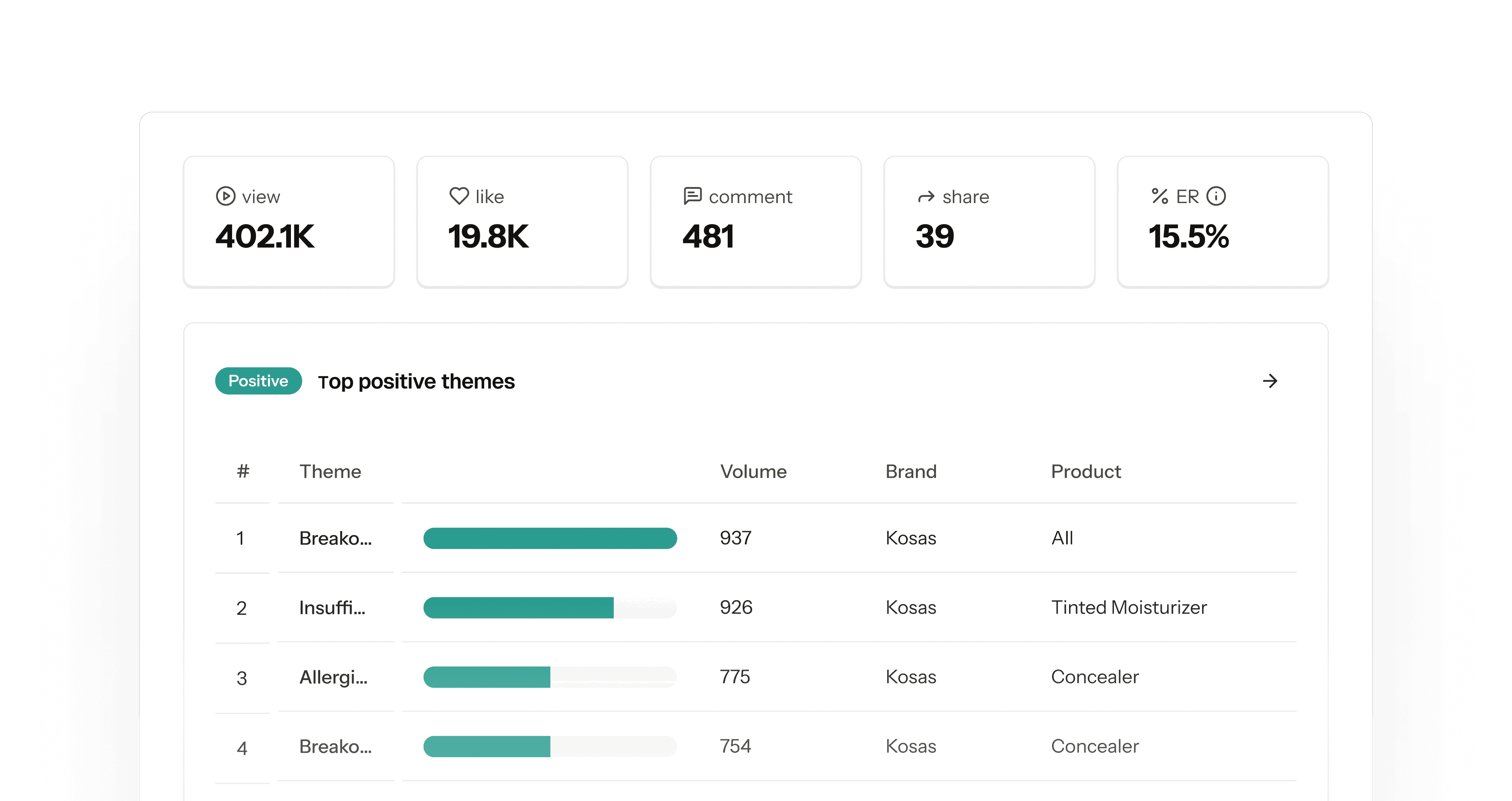 Standard tools just count Views and Likes. Syncly correlates those metrics with AI insights—like sentiment, video duration, and visual themes. Finally, understand why a video went viral, not just that it went viral.