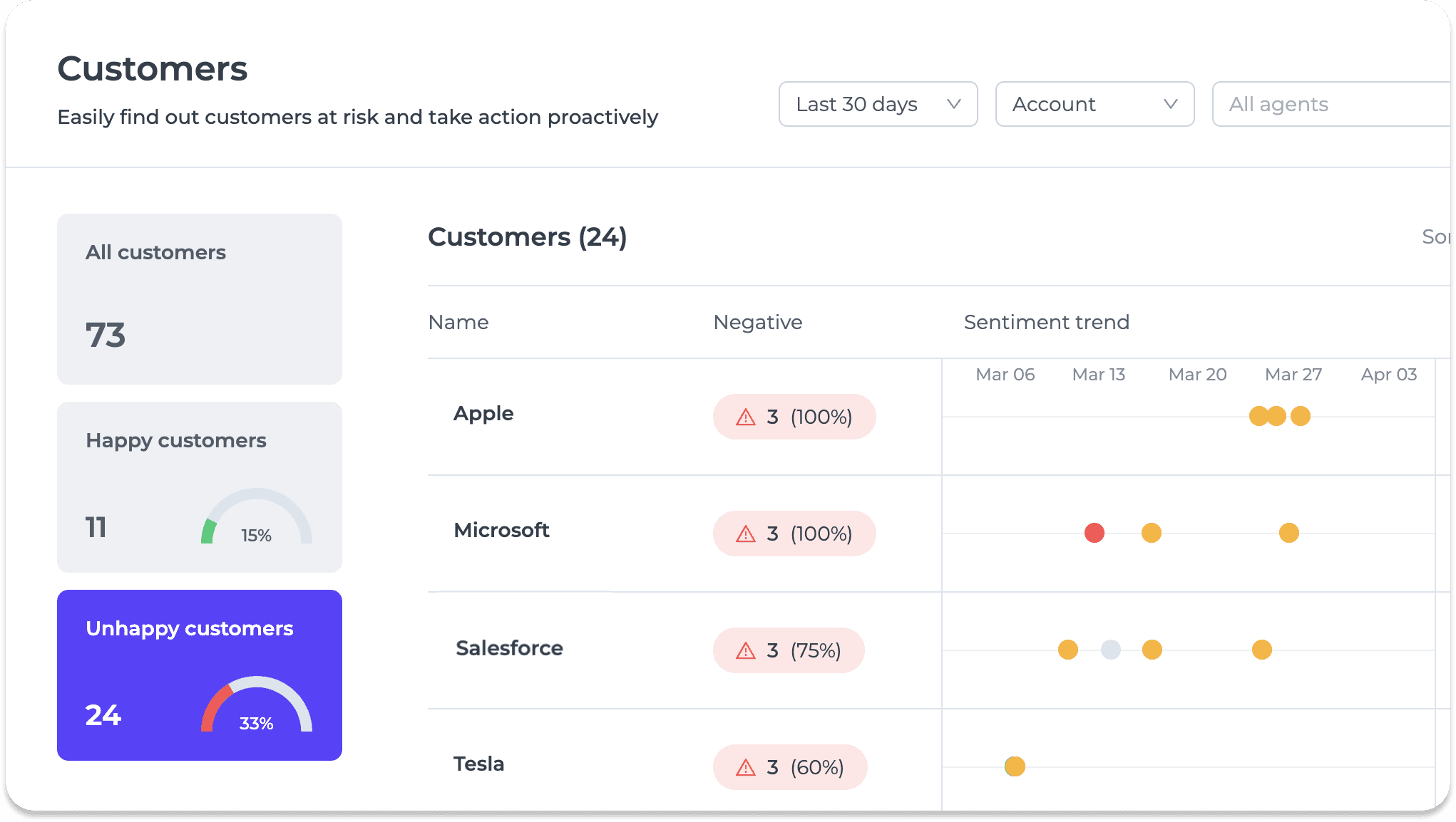 Proactively monitor customer sentiment trend